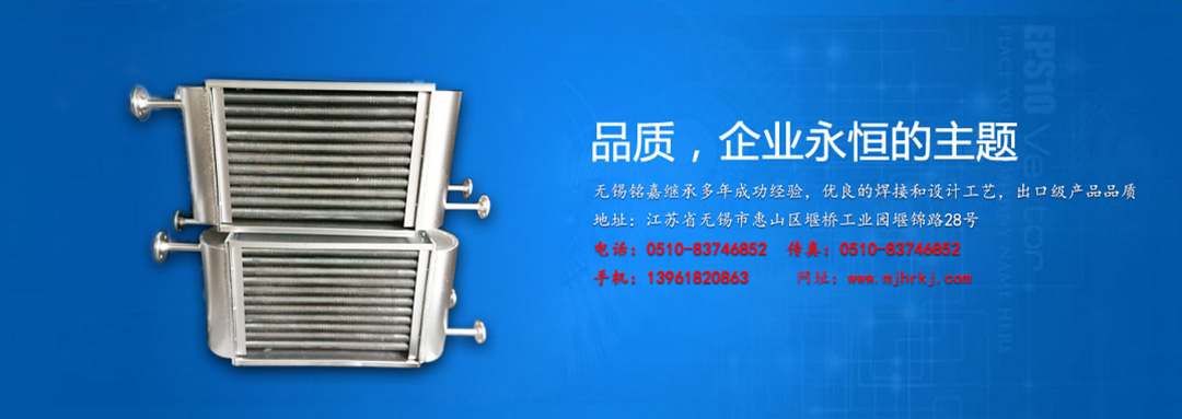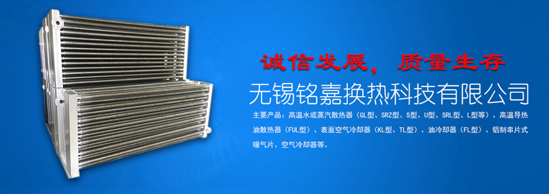 無錫銘嘉換熱科技有限公司是生產散熱器的專業工廠。 產品有:高溫水或蒸汽散熱器、高溫導熱油散熱器表面空氣冷卻器、油冷卻器鋁制串片式暖氣片、空氣冷卻器翅片管換熱器